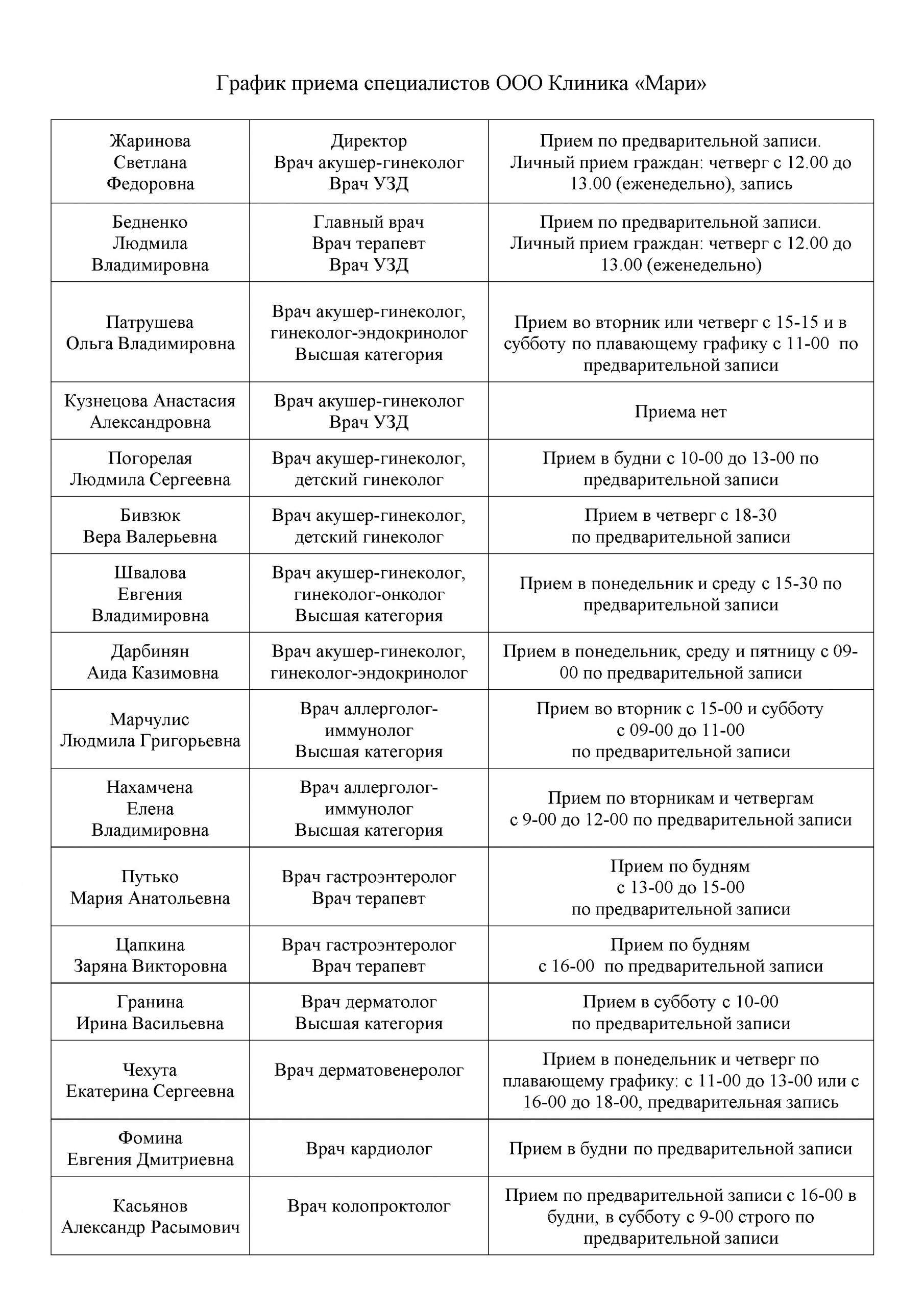Специалисты ООО Клиника «Мари» г. Благовещенск